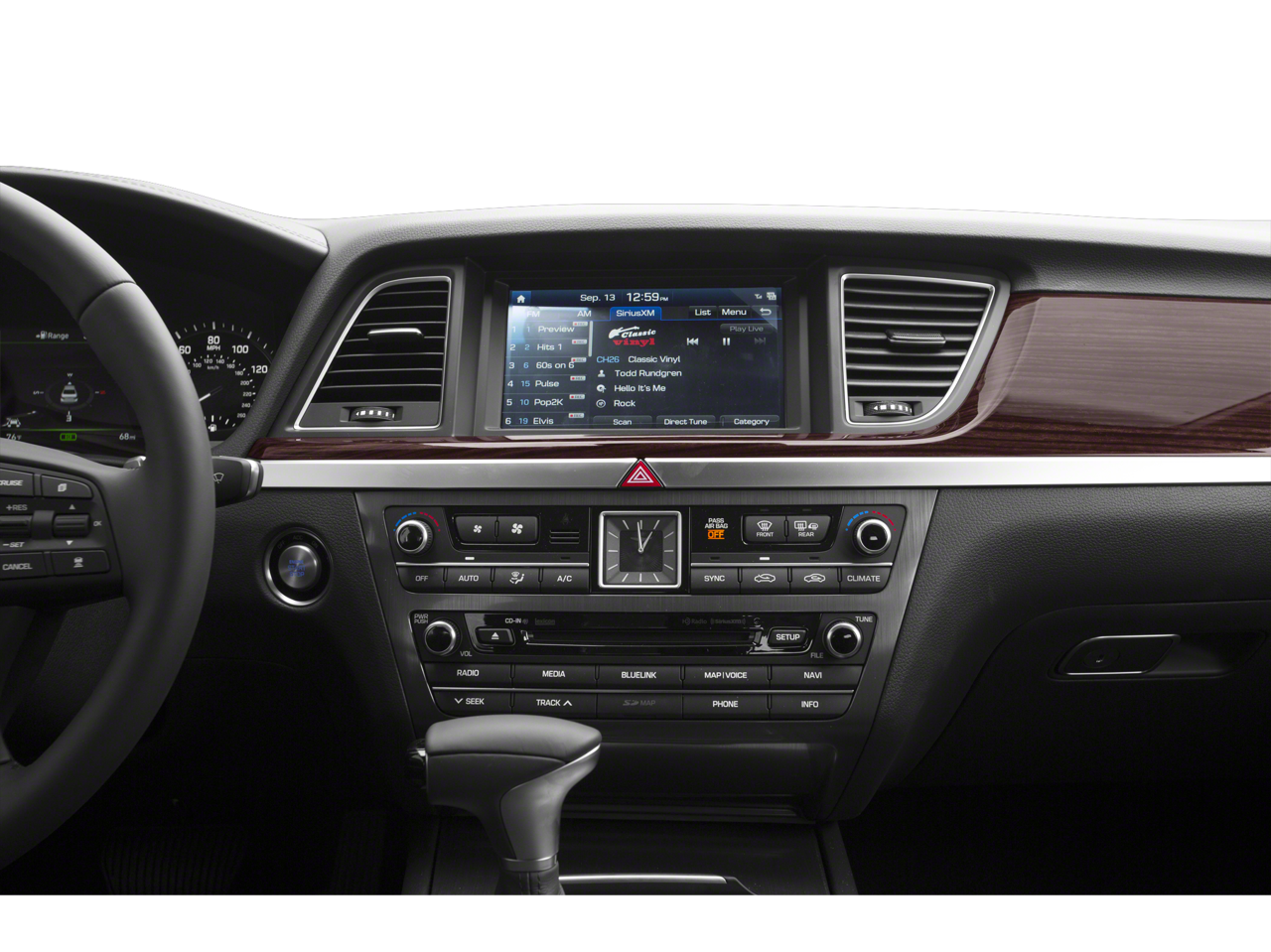 - Radio: AM/FM/HD/SiriusXM/MP3 Audio System -inc: 7 speakers (2 front-door-mounted speakers, 2 tweeters, 2 rear speakers and subwoofer), TBDW x 6 channel internal amplifier, AVN 5.0 navigation system, 8" touchscreen, HD Radio Traffic, Android Auto, Apple CarPlay, server based voice recognition, 1 USB data/charge plus 1 USB charge only, Bluetooth® hands-free phone system w/audio streaming and Genesis Connected Services