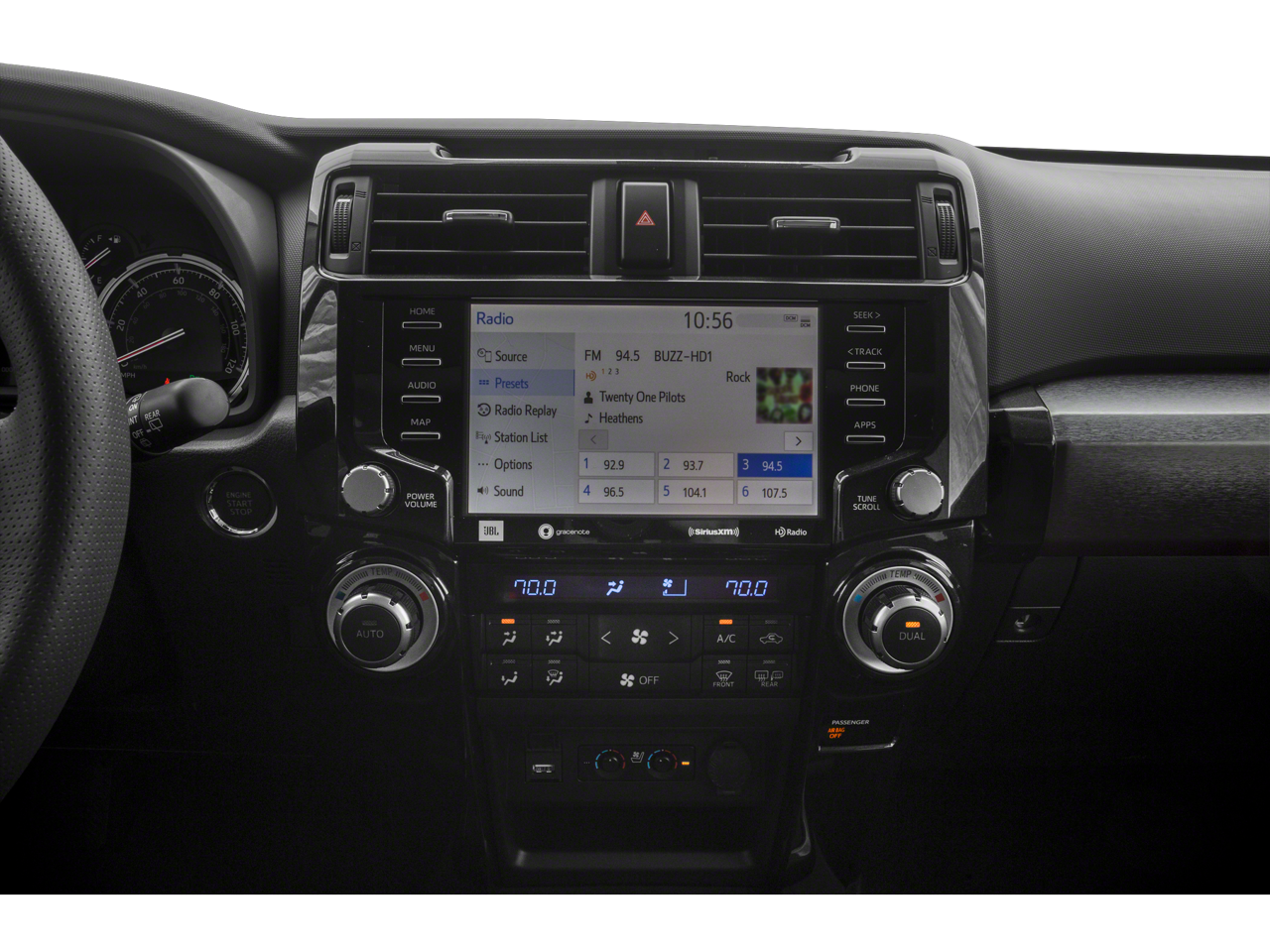- Radio: Premium JBL Audio -inc: 8.0 touch-screen HD radio, 15 JBL speakers including subwoofer and amplifier, Android Auto, Apple CarPlay, and Amazon Alexa compatible, USB media port, 4 USB charge ports, Dynamic Navigation w/up to a 3-year trial, dynamic POI search, dynamic voice recognition, hands-free phone capability and music streaming via Bluetooth® wireless technology, SiriusXM w/3-month All Access trial, Connected Services - Safety Connect w/1-year trial, Service Connect w/10-year trial, Remote Connect w/1-year trial, Wi-Fi Connect w/up to 2 GB within 3-month trial, Destination Assist w/1-year trial See toyota.com/audio-multimedia for details.