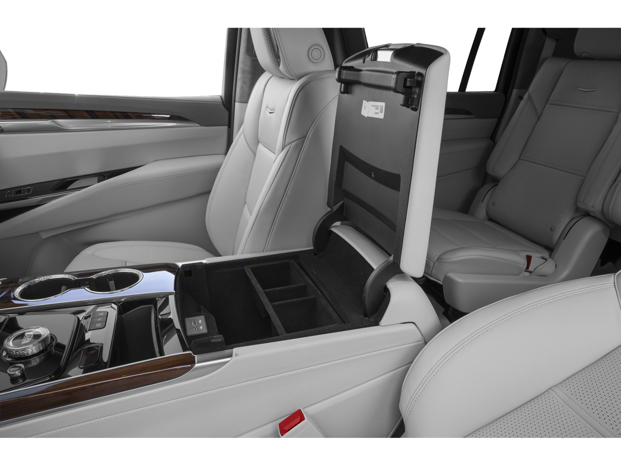 - Console, floor with covered storage, large and small storage bins, dual cup holders, electronic climate controls and second row heated seat controls. Also includes auxiliary power outlet, USB A/C ports and 110-volt outlet (Upgradeable to (DCK) Console refrigerator.)